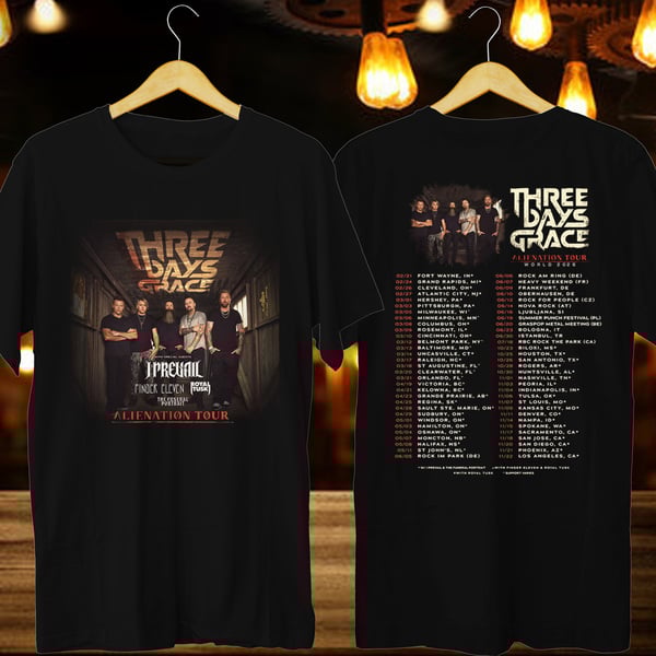 THREE DAYS GRACE ALLIENATION WORLD TOUR 2026. THREE DAYS GRACE. THREE DAYS GRACE FANS TEE .UNISEX TWO SIDE TEE DV01